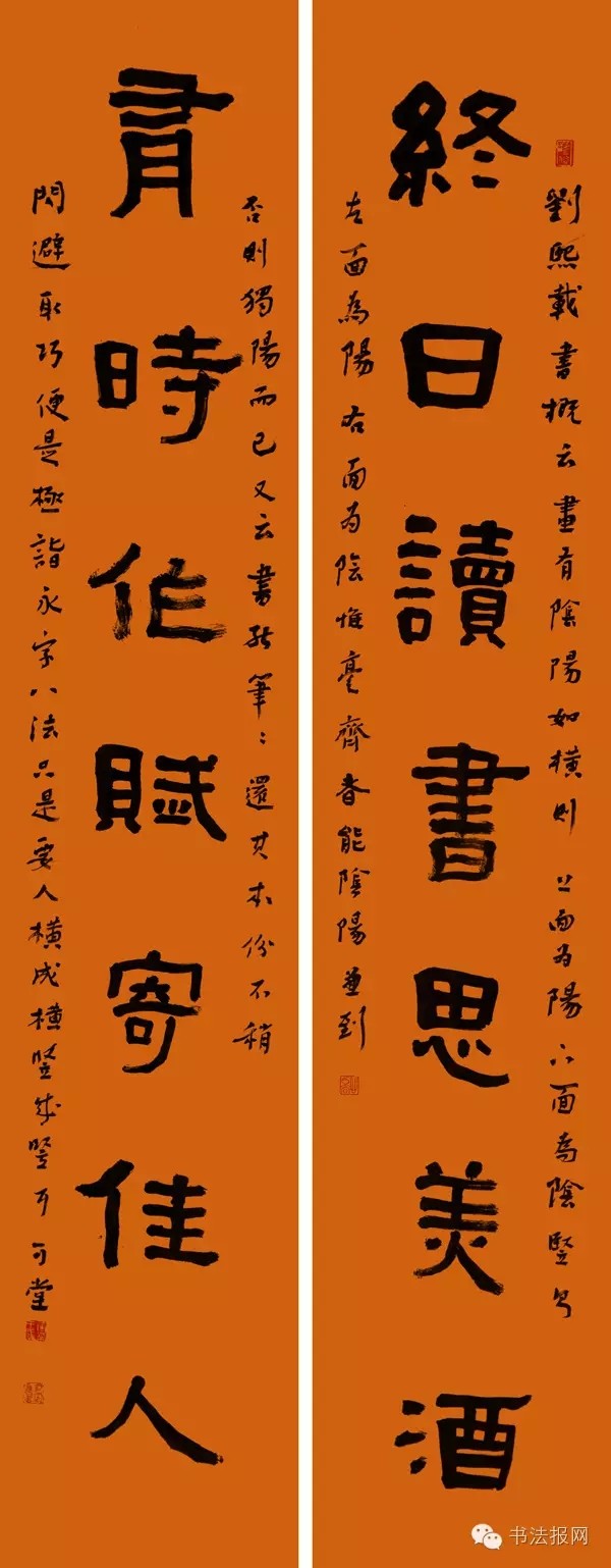 隶书《带弦守义七言联》等(刊于《北京晨报·翰墨名家》)